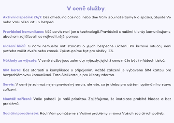 Spojení s námi lze navázat přes tlačítko na ústředně nebo tlačítko na ruce. Když identifikujeme problém, můžeme do bytu zavolat sami a zjistit, co se děje.
